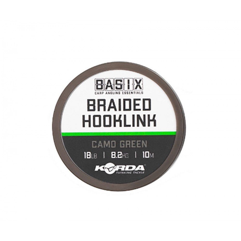 Korda Basix Braided Hooklink – дуже м'який, але водночас міцний і стійкий до стирання матеріал, який ідеально підійде для виготовлення коропових монтажів. Камуфляжно-зелений колір Korda Basix Braided Hooklink добре поєднується з будь-яким дном озера, на якому ви рибалите. Постачається з розривним навантаженням 18 та 25 фунтів у розмотуванні 10 м.