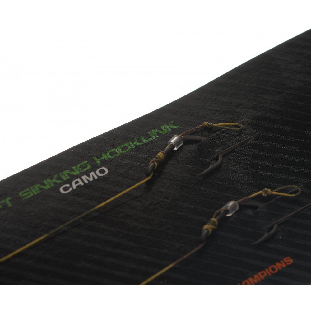 Carp Pro Camo Hooklink 15 см 25lb PTFE Wide Gape Сapture – повністю готовий до використання короповий повідець, який для більш природної презентації насадки виготовлено із камуфльованого повідцевого матеріалу Carp Pro Sinking Hooklink Camo. Це м'який, тонучий матеріал, що має надзвичайно високу міцність і спеціальне, камуфляжне забарвлення (Camo) у вигляді відтінків зеленого, пісочного й коричневого кольорів, що плавно чергуються. Цей повідцевий матеріал на дні поводиться природньо і при цьому ідеально маскується між рослинності, мулу, піску і дрібних каменів. Має чудову міцність на вузлах. Carp Pro Camo Hooklink 15см 25lb оснащено якісним гачком Carp Pro Wide Gape Сapture із чорним PTFE (тефлоновим) покриттям, що не дає відблисків, та агресивним дизайном для максимальної міцності та боротьби з коропом будь-якого розміру. Гачок має широкий піддів, коротку цівку, трохи загнуті всередину жало й вушко, а також агресивний вигин, який підвищує міцність гачка та засікання риби. Форма гачка серії Wide Gape Сapture BT чудово підходить для будь-якої презентації як тонучих, повільно тонучих, збалансованих, так і плаваючих насадок будь-якого типу. Вушко гачка на 5˚ загнуто в сторону жала – це значно покращує засікання завдяки швидкому розвороту гачка в роті риби. Довжина повідця: 15 см. Розривне навантаження: 25 lb.