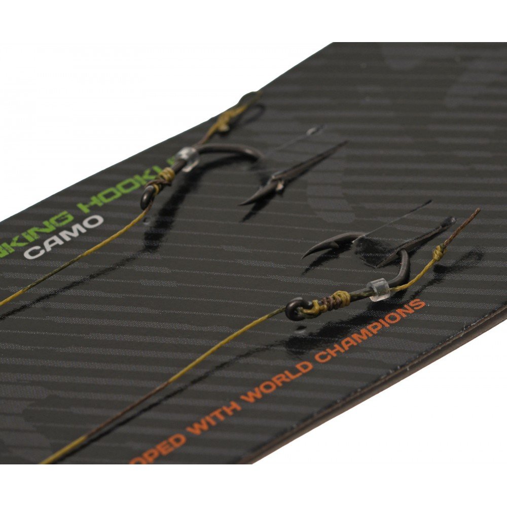 Carp Pro Camo Hooklink 25 см 25lb PTFE Wide Gape Сapture – повністю готовий до використання короповий повідець, який для більш природної презентації насадки виготовлено із камуфльованого повідцевого матеріалу Carp Pro Sinking Hooklink Camo. Це м'який, тонучий матеріал, що має надзвичайно високу міцність і спеціальне, камуфляжне забарвлення (Camo) у вигляді відтінків зеленого, пісочного й коричневого кольорів, що плавно чергуються. Цей повідцевий матеріал на дні поводиться природньо і при цьому ідеально маскується між рослинності, мулу, піску і дрібних каменів. Має чудову міцність на вузлах. Carp Pro Camo Hooklink 25см 25lb оснащено якісним гачком серії BT – Carp Pro Wide Gape Сapture із чорним PTFE (тефлоновим) покриттям, що не дає відблисків, та агресивним дизайном для максимальної міцності та боротьби з коропом будь-якого розміру. Гачок має широкий піддів, коротку цівку, трохи загнуті всередину жало й вушко, а також агресивний вигин, який підвищує міцність гачка та засікання риби. Форма гачка серії Wide Gape Сapture BT чудово підходить для будь-якої презентації як тонучих, повільно тонучих, збалансованих, так і плаваючих насадок будь-якого типу. Вушко гачка на 5˚ загнуто в сторону жала – це значно покращує засікання завдяки швидкому розвороту гачка в роті риби. Довжина повідця: 25 см. Розривне навантаження: 25 lb.