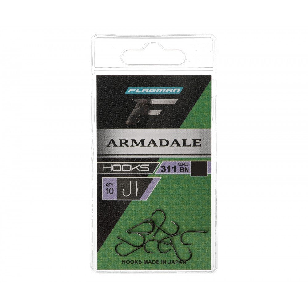 Flagman Hook Armadale – новинка, серія висококласних риболовних гачків, вироблених у Японії. Гачки Flagman Hook Armadale вирізняються високою якістю виготовлення і максимально задовольняють усім вимогам риболовів. Модель гачків Armadale 311 має напівокруглий вигин, кований піддів, середньої довжини цівку з кільцем для прив’язування, акуратну чіпку борідку, загнуте всередину надгостре жало з лазерним заточуванням. Гачки виготовлені з високовуглецевого сталевого дроту та мають антикорозійне покриття Black Nickel. Тривалий час зберігають первинну гостроту жала. Вони чудово підійдуть як для фідерної, так і для поплавцевої ловлі коропа, карася, лина, ляща, плітки на об'ємні насадки рослинного і тваринного походження. Для серії Flagman Hook Armadale 311 характерні висока міцність, чудова зачепистість і максимальна реалізація клювань. Залежно від величини ймовірної здобичі та оснастки, ви зможете легко підібрати гачки необхідного розміру. Доступні в розмірах № 8, 10, 12, 14. В упаковці: 10 шт.