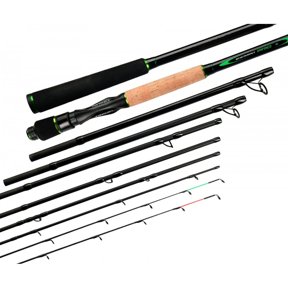 Flagman Sherman Pro NG Travel Feeder – серія сучасних, легких і досить потужних фідерних вудлищ, виготовлених із карбону UTW (Ultra Tech Wire Carbon) модульністю 30Т. Головна перевага вудлищ Sherman Pro Travel Feeder – це 8 та 9-секційна конструкція бланків, що забезпечує їм безпрецедентну компактність усього в 48 см! При цьому вона не має суттєвого впливу на характеристики цих фідерних вудлищ. Бланки дійсно можуть похвалитися заявленою середньо-швидкою дією та гарною кидковістю, що, погодьтеся, рідкість для більшості багатосекційних виробів Travel концепції. Вудлища дають змогу без проблем ловити дрібну та середню рибу – плітку, плоскирку, карася, ляща тощо – впевнено справляючись із великими екземплярами. Sherman Pro Travel Feeder New Generation вирізняються сучасним дизайном, посиленими стиками, анатомічним сплощеним руків'ям із пробки та EVA, високоякісною фурнітурою: полегшеними пропускними кільцями Sea Guide, зручним і надійним котушкотримачем скелеторного типу. Легкі пропускні кільця не перевантажують вудлище, а інноваційна схема їхнього розміщення сприяє підвищенню дальності закидання та рівномірному розподілу навантаження на бланк. Маючи будову Moderate-Fast, фідерні вудлища серії Sherman Pro Travel Feeder дають змогу використовувати тонкі акуратні оснастки, в той же час чудово в'яжуть велику рибу, максимально підвищуючи шанси риболова на успішне виважування трофея.