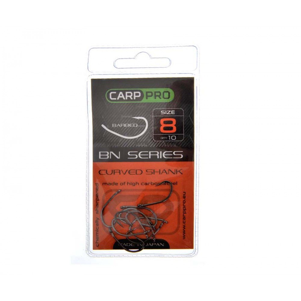 Carp Pro Black Nickel Curved Shank не вимагає термоусадки та ледарки. Підходить як для потопаючих, так і для спливаючих насадок. Завдяки японській технології хімічної обробки жала, гачок завжди дуже гострий. Матеріал гачка - особливо міцна, високовуглецева сталь. Гачок має високоякісне, антикорозійне покриття з нікелю (що зазначено в специфікації BN). Таке покриття не тільки робить гачок малопомітним в товщі води, але і надійно береже його від іржі.